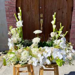 white and pink casket or Urn spray