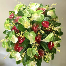 Price: $375.00#79 ANTHURIUMS AND SPRING MIX WREATH